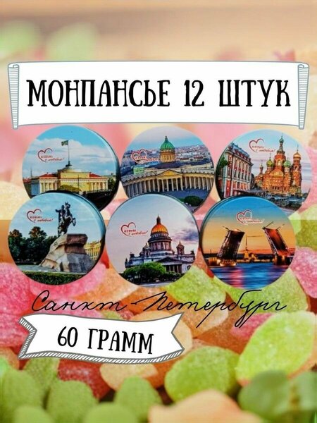 Представляем вам восхитительные монпансье с видами Санкт-Петербурга, которые подарят вам не только незабываемый вкус, но и прекрасное эстетическое наслаждение. Набор из 12 изысканных упаковок, каждая весом 60 граммов. Эти сладости не только порадуют ваши вкусовые рецепторы, но и станут отличным сувениром для гостей и любимых. В одной маленькой коробочке собраны ассорти вкусов : апельсина, лимона, клубники и зеленого яблока. Конфеты выполнены в традиционном стиле, а их оформление вдохновлено красотой и архитектурным великолепием Санкт-Петербурга. Это делает каждое монпансье уникальным произведением искусства, которое порадует не только любителей сладкого, но и ценителей культуры и истории. Они идеально подходят для подарков на праздники, торжества или просто как приятное угощение для себя. Монпансье с видами СПБ порадуют вас гармоничным сочетанием текстуры и аромата. Каждая конфета создается из высококачественных ингредиентов, что обеспечивает изысканный вкус и неповторимые ощущения. Вы сможете насладиться моментом, делясь сладкими мгновениями с друзьями и близкими. Удобная упаковка с заботой о Вас: она не только удобная, но и стильная. Вы можете быть уверены в качестве продукции, упаковка отлично сохраняет вкус и аромат. Не упустите возможность попробовать это великолепие или порадовать своих близких неповторимым подарком из Санкт-Петербурга. Попробуйте монпансье с видами СПБ и перенеситесь в атмосферу этого удивительного города с каждым маленьким леденцом.