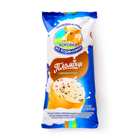 Мороженое пломбир "Коровка из Кореновки" с шоколадной крошкой в вафельном стаканчике - это вкусное и ароматное лакомство, которое придется по вкусу как детям, так и взрослым.
