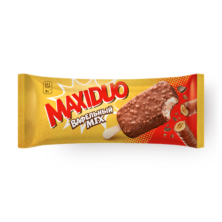 Мороженое Вафельный микс Maxiduo эскимо обладает насыщенным вкусом, который достигается благодаря использованию качественных ингредиентов.