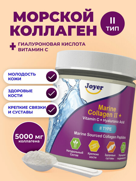 Коллаген морской 2 типа с гиалуроновой кислотой и витамином С (Joyer Marine Collagen II типа) — это не просто коллаген, а целенаправленное решение для здоровья суставов, молодости кожи и укрепления костной ткани. Усиленная формула с гиалуроновой кислотой и витамином С обеспечивает максимальную усвояемость и видимый результат уже через 1-2 месяца приема. Идеальное решение для тех, кто заботится о здоровье суставов, связок и костей.