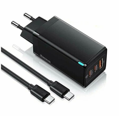 Мощное зарядное устройство U + (2х)C, Baseus Fast Charger, 65W, GaN 5 Pro, черное