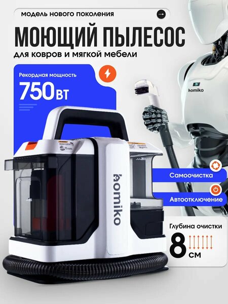 Моющий пылесос для мебели, ковров и авто Homiko VCC-01, мощность 750Вт