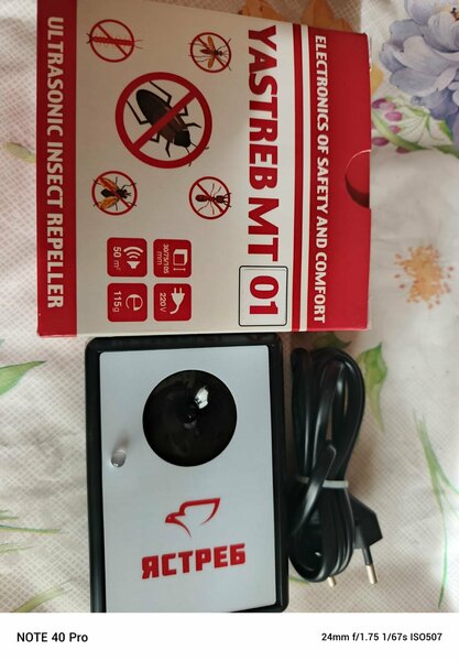 Ультразвуковой электронный отпугиватель от тараканов, мокриц, муравьёв и других домашних вредителей Ястреб МТ 01 универсальный и подробная инструкция по применению. Эффективная площадь отпугивания до 50 м2 для автомобиля, дома, дачи и других помещений. Внимание! В России появились дешёвые китайские некачественные подделки отпугивателя под маркой Ястреб! Опасайтесь таких подделок по низким ценам! Предлагаемый нами отпугиватель - напрямую от российского завода Ястреб.