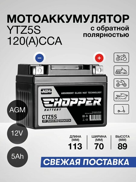 Мото аккумулятор CHOPPER AGM 12В 5 Ач (CT1205.2, YTX4L-BS, YTZ5S) — это надежный источник энергии, идеально подходящий для мопедов, скутеров и мотоциклов. С его помощью вы сможете уверенно отправиться в любое приключение, не беспокоясь о том, что аккумулятор подведет в самый неподходящий момент. Обладая высокой емкостью в 5.2 Ач и пусковым током 120 А, этот аккумулятор обеспечивает отличную производительность даже в сложных условиях. Изготовленный в России, аккумулятор CHOPPER сочетает в себе современную технологии AGM, что гарантирует отсутствие утечек и долговечность работы. Комплектация включает все необходимое для установки — аккумуляторная батарея и крепежный набор. Его универсальное крепление позволяет легко установить аккумулятор в любую мототехнику. Размеры упаковки (174 мм х 136 мм х 99 мм) и вес в 1.5 кг обеспечивают удобство транспортировки и хранения. Кроме того, мото аккумулятор CHOPPER AGM 12В 5 Ач аккуратно спроектирован для работы с различной техникой, включая водную, что делает его универсальным решением для всех любителей мотопутешествий. Не упустите возможность обеспечить надежное питание для своих транспортных средств. А с гарантией на 6 месяцев вы можете быть уверены в качестве и долговечности этого продукта. Выберите аккумулятор CHOPPER и забудьте о проблемах с запуском в любом сезоне!