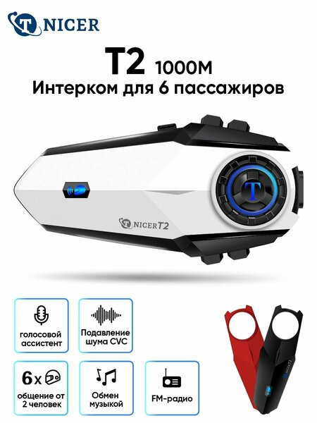 Мотогарнитура /Гарнитура для шлема, TNICER T2, для закрытого/открытого шлемов на 6 собеседников, Подавление шума CVC.