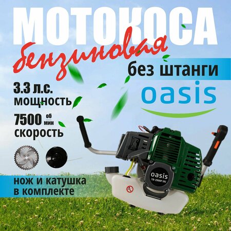 Бензиновая мотокоса триммер OASIS (БЕЗ ШТАНГИ) Дисковый нож Триммерная катушка с леской Ранцевый ремень с накладкой Ёмкость для смешивания топлива и масла Руководство по эксплуатации и гарантийный талон