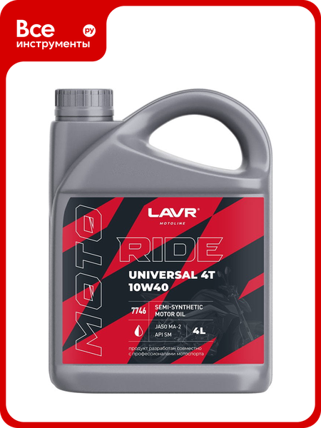 Полусинтетическое моторное масло для четырехтактных бензиновых двигателей, мотоциклов, квадроциклов, скутеров и мопедов и другой мототехники с воздушным и жидкостным охлаждением, с интегрированной и неинтегрированной коробкой переключения передач, с муфтой сцепления в масляной ванне и «сухой» и прочей мототехники с каталитическими нейтрализаторами и без, где необходим уровень эксплуатационных свойств API SM или ниже и JASO MA/MA2. В основе продукта — смесь синтетического и минерального базового сырья с добавлением современного пакета присадок. Благодаря стабильной основе имеет непревзойденные смазывающие, противоизносные и противозадирные свойства, увеличивающие срок службы двигателя.