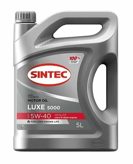 Моторное масло SINTEC LUXE 5000 SAE 5W-40 API SL/CF 5л - полусинтетическое моторное масло, разработанное специально для бензиновых и дизельных двигателей легковых автомобилей и легкого коммерческого транспорта. Масло SINTEC LUXE SAE 5W-40 API SL/CF изготовлено на основе синтетических базовых масел и высокотехнологичного пакета присадок, что обеспечивает надежную защиту двигателя от износа и коррозии в жестких условиях эксплуатации. Высокая термоокислительная стабильность масла гарантирует высокий уровень предотвращения образования шлама, что обеспечивает чистоту двигателя и продлевает его срок службы. Легкость пуска двигателя при отрицательных температурах обеспечивается благодаря низкому значению вязкости масла при низких температурах. Масло SINTEC LUXE SAE 5W-40 API SL/CF совместимо с уплотнительными материалами, что обеспечивает их сохранность и продлевает срок службы двигателя. Надежная защита двигателя при повышенных температурах обеспечивается благодаря высокому классу вязкости масла и его высокой термоокислительной стабильности. Объем: 5.0 л. Тип двигателя: четырехтактный. Класс вязкости SAE: 5W-40. Тип масла: полусинтетическое. Вид топлива: Бензин/Дизель. Стандарт API: SLCF. Тип тары: Пластиковая канистра.