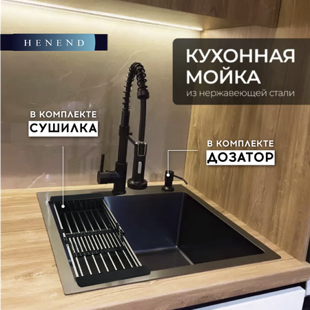 Мойка для кухни Henend 50x50B с дозатором и сушилкой