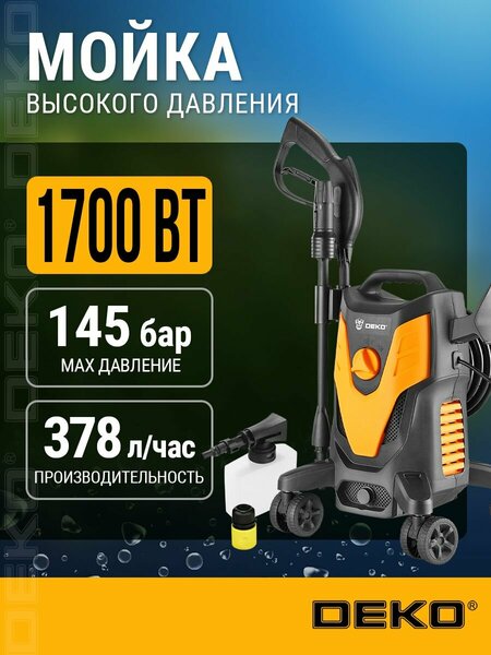 Мойка высокого давления DEKO DKCW145 - это мощный и надежный инструмент для ухода за автомобилем и другими поверхностями. DEKO DKCW145 оснащена электрическим двигателем мощностью 1700 Вт, что обеспечивает высокую производительность и эффективность работы. Напряжение сети составляет 220-230 В, что делает мойку совместимой с большинством домашних и профессиональных электросетей. Мойка высокого давления DEKO DKCW145 имеет максимальное давление от 115 до 145 бар, что позволяет эффективно удалять грязь и стойкие загрязнения. Алюминиевая помпа обеспечивает долговечность и надежность конструкции. DEKO DKCW145 оснащена функцией забора воды из емкости, что позволяет использовать мойку без подключения к водопроводу. В комплект поставки входят стандартные насадки, щетка, грязевая фреза и веерная насадка, что позволяет выбрать оптимальный режим работы для различных поверхностей и загрязнений. Защита от перегрева и автоматическое отключение при перегреве обеспечивают безопасность использования мойки высокого давления DEKO DKCW145. Мойка высокого давления DEKO DKCW145 выполнена в стильном черном и желтом цвете, что делает ее не только функциональным, но и стильным дополнением к вашему автомобилю.