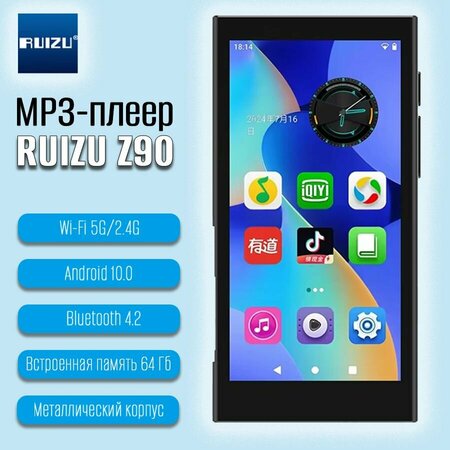 MP3-плеер RUIZU Z90, идеальное решение для любителей музыки и высококачественного звука. Этот современный плеер работает на базе операционной системы Android, что открывает доступ к множеству приложений и возможностей для развлечений. Оснащенный поддержкой Wi-Fi, вы сможете легко загрузить свои любимые треки и приложения. Одной из ключевых особенностей RUIZU Z90 является технология Bluetooth. Благодаря этому вы сможете без усилий подключать устройство к беспроводным наушникам или колонкам, наслаждаясь свободой движения и качественным звуком без проводов. Всего лишь с помощью нескольких кликов вы сможете соединиться с другими устройствами и погрузиться в мир музыки. С вместительной памятью на 64 Гб, MP3-плеер позволяет загрузить обширную библиотеку ваших любимых треков, аудиокниг и подкастов, чтобы всегда иметь под рукой развлечение. Простой и удобный интерфейс делает управление плеером интуитивно понятным, а стильный и компактный дизайн позволяет легко носить его с собой в кармане или сумке. Материал корпуса изделия: рамка из алюминиевого - цинкового сплава + стекло. Чип-платформа: MTK 6750 [Восьмиядерный процессор] Версия системы Android 10.0 Поддержка сети: WIFI-5G, WIFl-2,4G, мобильная точка доступа. Размер: 110*56*12 мм. Функция доступа в Интернет: Да Магазин приложений: Да Двунаправленная связь Bluetooth: Да Сенсорный экран IPS 4,0 дюйма Ночной режим: Да Вес: около 155 г Память: оперативная память 4 ГБ + встроенная память 64 ГБ Интерфейс зарядки / передачи данных: USB Type-C Аккумулятор: 2200 мАч / полимерная литиевая батарея Форматы поддержки музыки: полноформатный MP3 WAV DRM WMA OGG APE FLAV ACC [включая AAV-LC AAC-HE AAC-V1/V2] и другие основные форматы. Формат видео: поддерживает полные форматы, такие как RMVB, MP4, AVI, RM, MPG и т. д. Разрешение 720P [1280 * 720] 1080P [1080 * 1960] можно загрузить и воспроизводить напрямую без декодирования, с максимальной поддержкой HD 1920 * 1080p. Bluetooth 4.2 - поддерживает передачу Bluetooth в радиусе 10 метров и без препятствий. Диктофон: поддерживает формат 3Gpp для записи на расстоянии до 3 метров. Тексты: Поддерживает формат LRC. Электронная книга: поддерживает формат txt. Изображение: поддерживает основные форматы, такие как JOG, JPEG, BMP, GIF, PNG, TIF и т. д. Наушники: Поддерживает обычные 3 - 4 секционные наушники с сопротивлением 32 Ом выходная мощность 10 мВт Основные функции: Android, соединение Wi-Fi, загрузка приложений, музыка, видео, чтение электронных книг, FM-изображения, диктофон, календарь, будильник, калькулятор, Bluetooth.