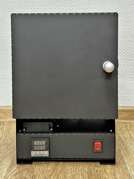 Универсальная муфельная печь. Нагревает изделие до 1200 °С, что позволяет использовать мини печь для: 1) обжига керамики, гончарных изделий; 2) нагрева металлов до температуры плавления; 3) закалки ножей, деталей и любых изделий, подходящих по габаритам; 4) лабораторных исследований в НИИ, на предприятиях; 5) спекания, запекания, отжига, отпуска, термообработки.