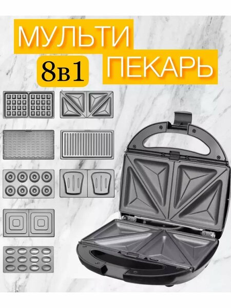 Важно: При первом включении мультипекаря может выделяться запах и дым связанное с обгоранием заводских тенов, что является нормальным для всех новых приборов , с нагревательными элементами. Не беспокойтесь, это быстро пройдет! Мультипекарь 8 в 1 — это универсальное устройство, которое позволит вам приготовить широкий спектр блюд для всей семьи. С его помощью вы сможете создавать разнообразные кулинарные шедевры, используя сменные панели для гриля, вафель, сендвичей, пончиков и орешков. Мультипекарь имеет компактный размер, что делает его удобным для использования на кухне или даче. Он оснащен сменными панелями, которые легко меняются и моются. Это позволяет быстро переходить от одного блюда к другому и поддерживать прибор в чистоте. Устройство отличается высокой мощностью и надежностью, обеспечивая быстрое и качественное приготовление пищи. Благодаря универсальности мультипекаря, вы можете экспериментировать с различными рецептами и удивлять своих близких вкусными блюдами. Если вы ищете универсальное устройство для приготовления разнообразных блюд, то мультипекарь 8 в 1 станет отличным выбором.
