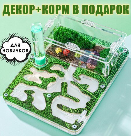 Идеальная муравьиная ферма для старта! Красивая, компактная, вместительная. Вмещает до 600 особей. Такой численности колония достигнет минимум через 1-1,5 года, затем, когда муравьям станет тесно, можно подключить дополнительный модуль.