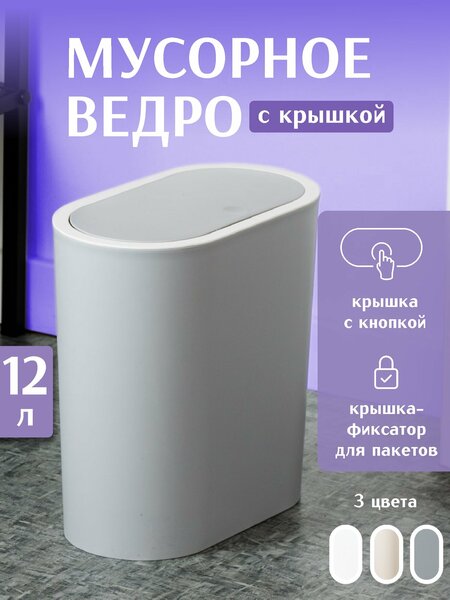 Наше пластиковое мусорное ведро для кухни с крышкой - идеальное решение для эффективного сбора мусора и поддержания чистоты в вашем доме. С вместительностью до 12 литров, это ведро обеспечит достаточно места для хранения всех видов мусора, будь то овощные отходы, пластиковые упаковки или другие бытовые отходы. Мусорный бак имеет удобную крышку на усиленных защёлках с пружиной, которая служит фиксатором легко и быстро открывается и закрывается одной рукой, защищая комнату от неприятного запаха, а пол - от выпадения мусора при опрокидывании. Гладкий корпус пластикового ведра для мусора кухонного с антискользящим дном легко мыть или протирать. При этом на хозяйственной корзине с крышкой не остаются отпечатки пальцев. Благодаря этому, вы можете разместить ведро в любом удобном месте - на кухне, в ванной, на улице или даже в офисе. Наше мусорное ведро имеет узкую полукруглую форму, что позволяет его легко разместить под раковиной, за туалетом или даже на столе в качестве настольной мусорки. Белый, серый или бежевый цвет ведра добавляет чистоты и элегантности любому интерьеру. Это универсальное кухонное приспособление также может быть использовано в доме, квартире или даче. Оно подходит для раздельного сбора мусора и может быть использовано как хозяйственное ведро или контейнер для сбора других отходов. Будьте заботливы к окружающей среде и сделайте правильный выбор с нашим пластиковым мусорным ведром для кухни с крышкой. Оно станет незаменимым аксессуаром для вашего дома!