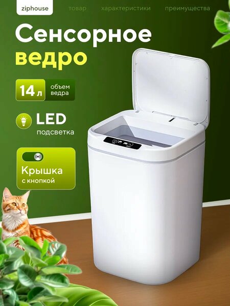 Добро пожаловать в магазин товаров для дома ZipHouse. Создай уют с нами, ведь наши товары подойдут к любому интерьеру и сэкономят пространство. ZipHouse – это то, что ты искал! Сенсорная мусорка ZipHouse инновационное решение для покупки, обработки отходов в вашем доме или офиса. Оборудована специальным датчиком и оснащено подсветкой, который реагирует на движение вашей руки или предмета в близи контейнера. Благодаря технологиям, вам не нужно прикасаться к корзине руками, обеспечивая высокий уровень гигиены. Открытие и закрытие крышки происходит автоматически, очень удобно, если у вас заняты руки. Работает от батареек и не требует зарядки, оснащена функцией автоматического выключения, экономит энергию. Стильный дизайн и черный цвет подойдет для любого интерьера. Настольная минимусорка очень проста в использовании, достаточно поднести руку или предмет перед датчиком, крышка откроется и закроется. Легко моется и устойчива к пятнам и царапинам. Автоматическое ведро объёмом 14 литров имеет LED подсветку, антибактериальное покрытие, помогает бороться с бактериями и вирусами. Обеспечивает стерильность емкости в утилизации мусора. Помойное ведро в ванну и туалет, так и для отходов на кухне. Подойдет для спальни и кухни и не займет много места дома. Урна изготовлена из высококачественного пластика, прочное и долго вечное, легко моется водой. Оснащено системой запаха защиты, предотвращает удаление не приятных запахов. Универсальное для любых отходов, остатков еды, подгузников, хозяйственного и домашнего мусора. Много функциональное и герметичное ведёрко не занимает много места. Под бак подойдут любые одноразовые мусорные пакеты. Аксессуар в виде фиксатора, позволяет быструю сменку мешка. Приобретая товар, вы делаете вклад в сохранение окружающей среды и экологического образа жизни.