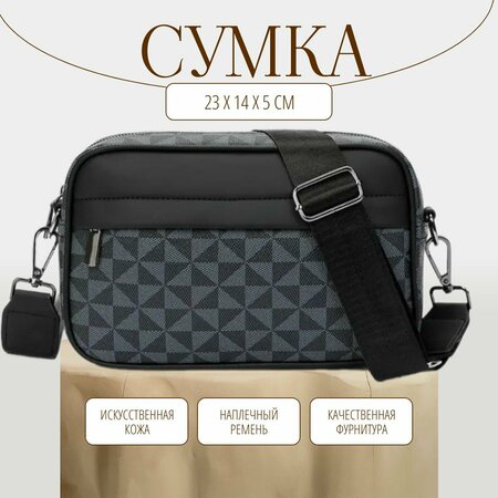 Мужская сумка на плечо кросс-боди выполнена из мягкой, приятной на ощупь экокожи с водоотталкивающей пропиткой. Качественная экокожа этой сумки не теряет свои свойства и не мнется. Сохраняет привлекательный внешний вид несколько сезонов. Есть регулируемый наплечный ремень. Сумка довольно компактная, но в тоже время вместительная, помещается всё необходимое. Удобный мини портфель незаменим для учебы, для офиса, для работы, на каждый день. Удобная и практичная сумка кросс-боди - современный аксессуар молодого современного мужчины. Размеры: 23х14х5 см Материал: искусственная кожа Материал подкладки: полиэстер Застежка: молния С наплечным регулируемым ремнем Влагонепроницаемая