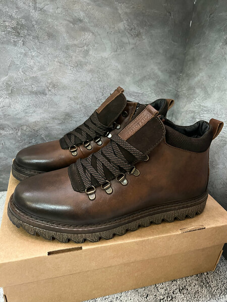 Мужские зимние ботинки из натуральной кожи с подкладкой из шерсти Представляем зимние мужские ботинки, выполненные из высококачественной натуральной кожи, обеспечивающей прочность и износостойкость. Внутренняя подкладка из натуральной шерсти подарит вам комфорт и тепло даже в сильные морозы, поддерживая оптимальную терморегуляцию. Глубокий протектор подошвы из надежного материала гарантирует отличное сцепление с поверхностью, предотвращая скольжение на льду и снегу. Ботинки имеют классический дизайн с удобной шнуровкой и боковой молнией, что позволяет быстро надевать и снимать обувь. Устойчивая подошва и анатомическая форма обеспечат комфорт при длительной ходьбе. Стильная модель идеально подойдет как для повседневной жизни, так и для деловых образов, сочетаясь с любым зимним гардеробом. Преимущества: Натуральная кожа верха – долговечность и эстетика. Внутренняя шерстяная подкладка – комфорт и сохранение тепла. Прочная подошва с протектором – уверенность на зимних дорогах. Удобная система застежек – сочетание молнии и шнуровки. Эти ботинки – идеальное сочетание качества, практичности и элегантного стиля для зимнего сезона. Подходят на стандартную полноту стопы и небольшой +/-. Размер в размер!