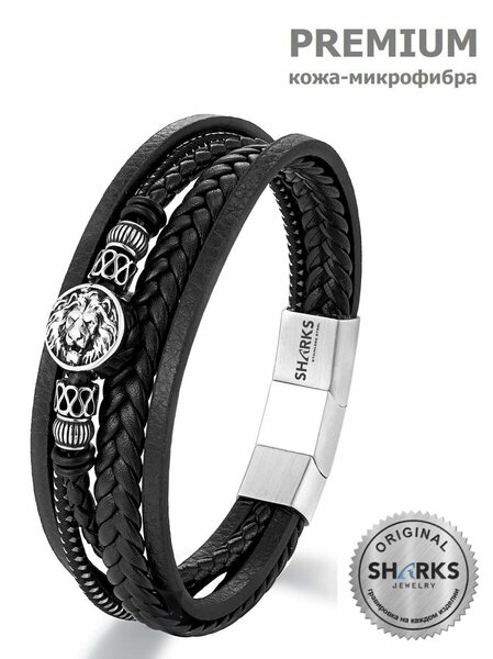 Браслет кожаный на руку SHARKS с шармом львом (лев) из медицинской стали, многослойный. Унисекс. Браслет имеет застежку с удлинителем из хирургической стали 316L. Длина без удлинителя - 19 см. Длина с удлинителем - 20.5 см. Подойдет на запястье от 16.5 - 19 см. Застежка на сильном магните. Многослойный мужской браслет SHARKS из кожи и стали. Изготовлен из экокожи Mf* (микрофибры премиального качества). Застежка и шарм ЛЕВ изготовлены из хирургической стали 316L на сильном магните с фиксатором. *Micro fiber - это премиальная экокожа из тончайших волокон из полиэстера, что придает ей мягкость, легкость и функциональность. Микрофибра обладает высокой прочностью, устойчивостью к химическому и световому воздействиям, этот материал поддается стирке. Кожа MF превосходит натуральную по многим качественным показателям: во-первых она лучше держит форму на запястье, также имеет повышенную стойкость к водопоглощению; обладает способностью «дышать» (что делает ее теплой в мороз и не дает накалиться в жару); дольше держит цвет и не растягивается со временем. Кожаный браслет давно уже перестал быть просто украшением. Мужской браслет часто приобретают в качестве символа власти и силы, женский - для акцента в образе. Необязательно переплачивать - мы докажем, что бижутерия может выглядеть дорого и стильно! Браслет выполнен из премиальной кожи микрофибры - он обладает высокой прочностью и полностью безопасен для кожи, так как изготовлен из экологичного материала. Несколько шармов придадут мужским украшениям особый стиль. Шарм - это подвеска в виде акулы на шнурке браслета, которая дополняет украшение и делает его непохожим на другие. Все изделия SHARKS высочайшего качества и имеют брэнд-нейм изготовителя.