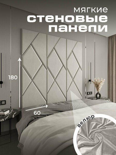 Мягкие стеновые панели — это современный и стильный элемент дизайна, который добавит уюта и комфорта в вашем доме или офисе. Они не только улучшат внешний вид комнаты, но и выполнят функцию спинки для кровати. Подарите себе возможность расслабиться и отдохнуть после долгого дня, купив изголовье для кровати. Стеновые панели для комнаты в современном исполнении обеспечат вам комфортную поддержку, а также добавит дополнительную звукоизоляцию, что особенно актуально для спальни. Декоративные стеновые панели идеально подходят для детской комнаты, домашнего кинотеатра, спальни, офиса, прихожей, зала и других помещений. Мягкое изголовье для кровати легко очищается от пыли и грязи с помощью влажной тряпочки. Товар от производителя! Выполнен из качественных материалов велюр, поролон и МДФ. В упаковке стеновая панель размером 180x60 см, которая состоит из 6-ти сборных частей. Креплением послужат жидкие гвозди (не идут в комплекте). Купив мягкие стеновые панели, вы получите не только стильный элемент декора, но и функциональное решение для вашего отдыха. Обновите свой интерьер с помощью уникальных и стильных деталей.