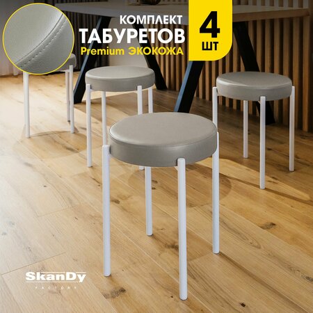 Наши стулья универсальной круглой формы будут отличным дополнением для туалетного столика, украсят обеденную зону, квартиру, дачу или даже офис. Комплект из 4шт. табуретов для кухни станет идеальным вариантом для любого современного интерьера в стиле лофт или модерн. Они подойдут для использования в столовой или гостиной. Благодаря своему компактному размеру, и небольшому весу 2.5кг. табуретки помещаются в любую комнату или на балкон, не занимая много места. Их легко сложить друг на друга, что делает набор легким в хранении. Экокожа PREMIUM качества обеспечивает прочность, износостойкость и простоту в уходе. Наполнитель - упругий поролон (ППУ) предоставляет максимальный комфорт и поддержку. Качественный пошив обивки пуфов способствует долговечности и аккуратному виду. Цельносварной металлический каркас выдерживает нагрузку до 120кг. Металл стенка 1,2мм, окрашен порошковой краской матовой текстуры. Простая сборка - необходимо только прикрепить сидушку к железному основанию. Стальные ножки оснащены заглушками и защитят напольное покрытие от повреждений. Эргономичная высота удобна для стандартного кухонного стола. Табуреты отлично подойдут для подарка на новоселье. Больше мебели для дома вы можете увидеть в нашем каталоге SkanDy Factory