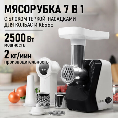 Мясорубка LUMME LU-MG2114C 2500W, реверсивная, защита от перегрузки, белый мрамор
