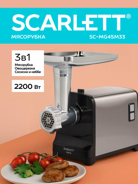 Мясорубка с насадкой для кеббе и сосисок, функция реверс SCARLETT SC-MG45M33