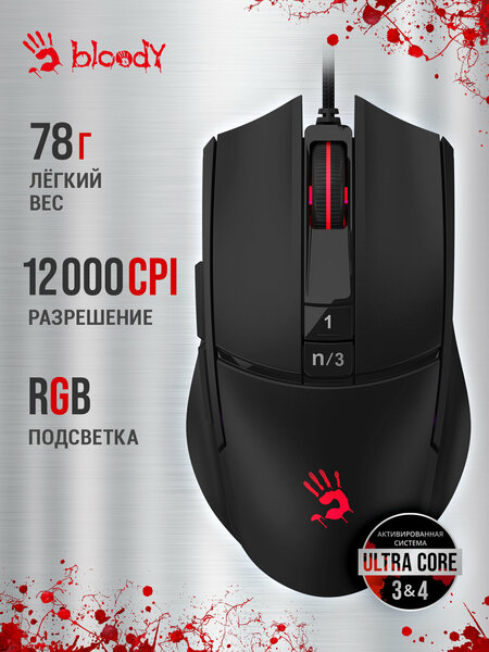 4, 6 Режимов оружия левой клавиши. Игровой сенсор Max BC3332-A, RGB подсветка, RGB подсветка, встроенная память 4 МБ, Игровой сенсор Max BC3332-A, Оптический датчик нажатий, Программируемые кнопки, Тефлоновые ножки, Эргономичная конструкция, активирована система Bloody Core 3, встроенная память 4 МБ