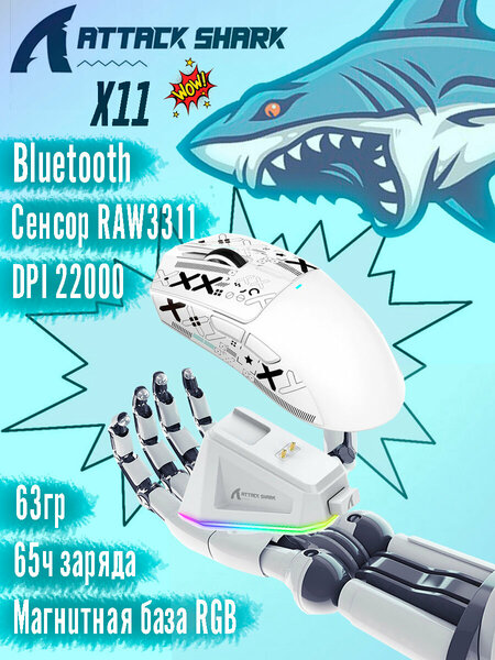 Игровая мышь Attack Shark X11 поставляется в удобной упаковке, которая включает все необходимые компоненты для начала использования. В комплект входят сама мышь, беспроводной приемник, магнитная зарядная станция, кабель для подключения и документация. Это позволяет пользователю сразу же оценить все возможности устройства, не тратя время на поиск дополнительных аксессуаров. ультралегкая конструкция 63 грамма Одним из главных достоинств Attack Shark X11 Black является ее ультралегкая конструкция. С весом всего 63 грамма, эта мышь идеально подходит для длительных игровых сессий. Легкость устройства снижает усталость рук и запястья, что особенно важно для геймеров, проводящих много часов за игрой. Такой подход к дизайну делает мышь удобной для быстрого и точного управления. магнитная зарядная док-станция С подсветкой Attack Shark X11 Black комплектуется стильной магнитной зарядной док-станцией с подсветкой. Это не только удобно, но и добавляет эстетики вашему рабочему месту. Подсветка сигнализирует о состоянии зарядки, а магнитное соединение обеспечивает надежное крепление. Вы можете быть уверены, что ваша мышь всегда будет готова к игре. игровой сенсор PIXART PAW3311 Мышь оснащена высококачественным игровым сенсором PixArt PAW3311, который обеспечивает отличную точность и отзывчивость. Максимальное разрешение в 22000 dpi позволяет настроить чувствительность под любые игровые предпочтения. Скорость сенсора в 400 IPS и максимальное ускорение в 40 G делают Attack Shark X11 Black идеальным выбором для динамичных игр, где каждая деталь имеет значение. современный чипсет BK3633 Attack Shark X11 Black использует современный чипсет BK3633, который гарантирует стабильную работу и минимальные задержки при передаче данных. Это особенно важно для многопользовательских игр, где каждая миллисекунда может повлиять на исход сражения. Чипсет обеспечивает надежное соединение и высокую производительность даже в самых требовательных условиях. 3 типа подключения: BLUETOOTH / радиоканал / проводной Удобство использования мыши заключается в наличии трех типов подключения: Bluetooth, радиоканал и проводной режим. Это дает пользователю возможность выбрать наиболее подходящий способ подключения в зависимости от ситуации. Например, Bluetooth идеально подходит для мобильных устройств, а радиоканал обеспечивает стабильное соединение во время интенсивных игр на ПК. Емкий встроенный аккумулятор 300MAH: до 65 часов работы без подзарядки Attack Shark X11 Black оснащена мощным встроенным аккумулятором емкостью 300mAh, который позволяет устройству работать до 65 часов без подзарядки. Это значит, что вы можете наслаждаться долгими игровыми сессиями без необходимости постоянно беспокоиться о разрядке. Быстрая зарядка также позволяет быстро вернуть мышь в строй после длительного использования. Надежный энкодер скролла TTC Энкодер скролла TTC обеспечивает плавный и надежный скроллинг, что является важным аспектом при работе с документами и веб-серфинга, а также в играх, где точность прокрутки может иметь решающее значение. Этот компонент гарантирует долговечность и стабильную работу даже после длительного использования. Поддержка программного обеспечения Attack Shark X11 Black поддерживает специальное программное обеспечение, которое позволяет пользователям настраивать кнопки, профили и другие параметры под свои нужды. Это дает возможность каждом