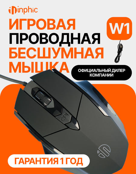 Мышь проводная inphic PW1 позволяет играть с максимальной эффективностью. В мышке применяется датчик 800/1200/1600/2400dpi, регулируемой в широком диапазоне отдельной кнопкой. inphic PW1 оснащена 6 программируемыми кнопками. Мышка бесшумная, ночное использование не повлияет на других. Конструкция корпуса обтекаемой формы гарантирует комфорт и точность движений. В программном обеспечении можно назначать внутриигровые команды, осуществлять контроль над процессом управления системой и настраивать функциональность клавиш. Система подсветки RGB с фирменной технологией LIGHTSYNC позволяет создать собственный игровой стиль с помощью 300 млн оттенков и анимированных эффектов.