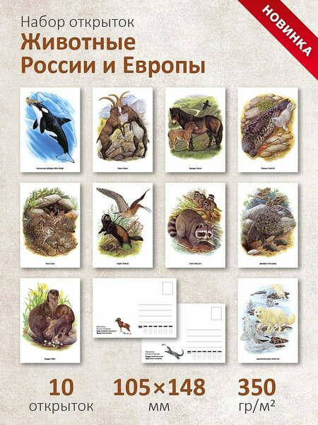 Достоинства:Упакован набор надежно, в толстый картон, карточки пришли в целости и сохранности. Плотная бумага, яркие рисунки, на обратной стороне есть разлиновка под адрес и форма для индекса. Недостатки:Пара животных подписана странновато: тюлени переведены как "seal cat", а горные козлы подписаны как "коза/sheep". Комментарий:Положили одну открытку в подарок, очень приятно. В целом прекрасные открытки, спасибо!