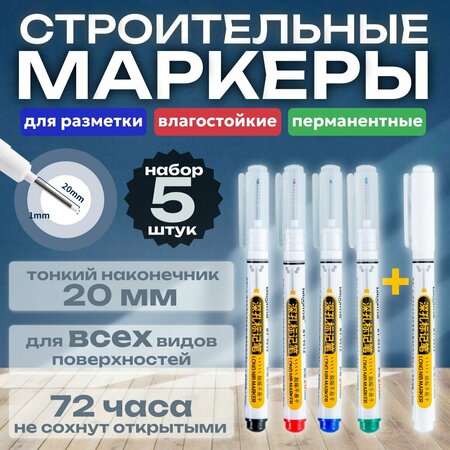 ## Набор строительных перманентных маркеров - 5 штук, яркий микс для любых задач! Хит продаж! Набор строительных перманентных маркеров – незаменимый инструмент для профессионалов и любителей! Целых 5 цветных маркеров – черный, красный, синий, зеленый, белый – помогут вам в ремонте, строительстве, творчестве и хобби! Успейте купить по акции! Преимущества нашего набора: