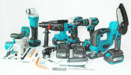 Представляем вашему вниманию набор аккумуляторного инструмента 7 в 1, идеально подходящий как для профессионалов, так и для домашних мастеров. Этот многофункциональный комплект включает в себя все необходимые инструменты для выполнения широкого спектра задач. В комплект входят перфоратор, гайковерт, шуруповерт с железной головой 13 мм, болгарка, циркулярная пила, цепная пила и лобзик, что делает его незаменимым помощником в любом хозяйстве или на стройке. Все инструменты работают от мощных аккумуляторов 18V, что обеспечивает длительное время работы и высокую производительность. В комплекте идут 4 АКБ по 6 Ан, что позволяет всегда иметь под рукой запасные батареи для непрерывной работы. Кроме того, в набор входят 2 зарядных устройства, что значительно ускоряет процесс зарядки и позволяет быстро вернуться к работе. Каждый инструмент в наборе оснащен бесщеточным двигателем, что обеспечивает более длительный срок службы и меньшие затраты на обслуживание. Все инструменты удобно хранятся и транспортируются в одном кейсе, который обеспечивает надежную защиту и удобство при переноске. Этот набор станет отличным выбором для тех, кто ценит качество, надежность и удобство. Независимо от того, являетесь ли вы профессионалом или домашним мастером, с этим набором вы сможете справиться с любыми задачами быстро и эффективно.