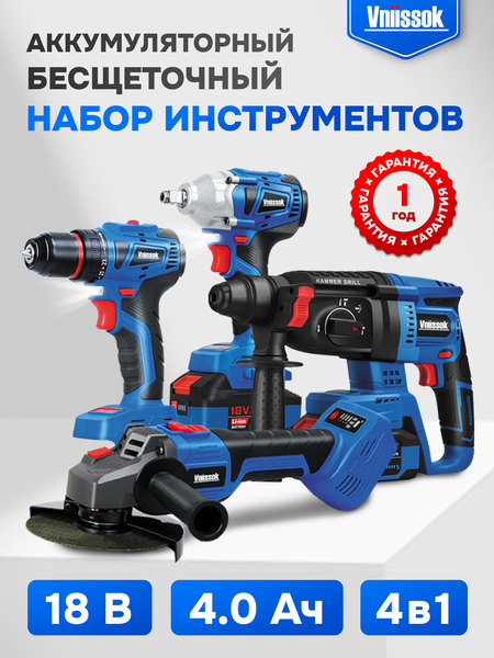 Набор аккумуляторных бесщеточных инструментов 18V (Перфоратор + УШМ + Шуруповерт + Гайковерт)(Перфоратор+УШМ+Шуруповерт+Гайковерт) - это идеальный выбор для тех, кто любит работать быстро и эффективно. Этот набор состоит из четырех инструментов, которые могут использоваться в различных ситуациях: от ремонта дома до профессиональной работы по строительству. Особенностью этого набора является его компактность и легкость использования. В комплекте к инструментам идёт два аккумулятора ёмкость 4.0Ач, что позволяет эргономично использовать и хранить инструменты. Это делает работу более удобной и быстрой, так как вам не придется постоянно искать источник питания для своих инструментов. Набор аккумуляторных бесщеточных инструментов V18 в кейсе также отличается высокой мощностью и долговечностью. Он может использоваться в самых сложных условиях, благодаря своей прочности и надежности. Кроме того, этот набор инструментов имеет широкий диапазон применения, что делает его универсальным решением для любого проекта. Помимо всего вышеперечисленного, набор аккумуляторных бесщеточных инструментов V18 в кейсе также обладает высоким качеством сборки и материалов. Он изготовлен из лучших материалов, что обеспечивает ему долгую службу и высокую надежность. Технические характеристики Перфоратор (V0025) Частота ударов 0-3500 уд/мин Энергия удара 2Дж Тип патрона SDS Plus Скорость вращения 1400 об/мин Диаметр сверления Дерево-28мм, Металл-13мм, Бетон-22мм УШМ (V0020) Число скоростей 3 Частота вращения шпинделя 0-9000 об/мин Диаметр диска 125мм Макс. толщина круга 6.4мм Резьба шпинделя М14 Посадочный диаметр 22.2мм Шуруповерт (V0018) Макс. крутящий момент 45Нм Степени регулировки затяжки 20 Число оборотов на холостом 0-500/0-1600 об/мин Металлический патрон Быстрозажимной Диаметр зажима 0.8-10мм Диаметр сверления в древесине 20мм Диаметр сверления в металле 10мм Гайковерт (V0019) Частота вращения шпинделя 0-2800 об/мин Тип держателя 12.7мм Макс. крутящий момент 330Нм Наличие удара с ударом Число скоростей 2 Размер патрона 1/2 Тип патрона Квадрат С этим комплектом вы сможете выполнять любые ремонтные и строительные работы без привязки к розетке. Компактность и мобильность набора сделают вашу работу максимально комфортной. Так же все из инструментов набора можно приобрести и отдельно Перфоратор V0025 - артикул товара отдельно на Маркете - 4792919429 УШМ V0020 - артикул товара отдельно на Маркете - 497349766 Шуруповерт V0018 - артикул товара отдельно на Маркете - 51033318550 Гайковерт V0019 - артикул товара отдельно на Маркете - 4900419822