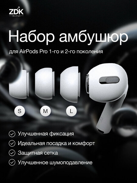 Комплект силиконовых амбушюр для Airpods Pro: идеальная посадка и комфорт на весь день. Хотите, чтобы ваши Airpods Pro сидели идеально и не выпадали из ушей? Представляем комплект амбушюр, который сделает наушники еще более удобными! Преимущества: • 3 размера (S, M, L): выберите амбушюры для наушников, которые подойдут именно Вам! • Улучшенная фиксация: силиконовые насадки для наушников плотно держатся, не скользят и не выпадают из ушей во время занятий спортом или бега. • Материал: гипоаллергенный силикон высшего качества с матовой поверхностью не вызывает раздражения даже при длительном использовании. • Пылезащитная сетка: предотвращает попадание пыли, ушной серы и влаги внутрь наушника, продлевая срок службы гарнитуры. • Улучшенное шумоподавление: амбушюры для airpods pro блокируют внешний шум, позволяя наслаждаться безупречным звучанием любимой музыки. • Усиление басов: силиконовые вкладыши для наушников усиливают басы, делая звучание более насыщенным и глубоким. • Универсальность: подходят для Airpods Pro 1-го и 2-го поколения. Подарите своим Airpods Pro новую жизнь!