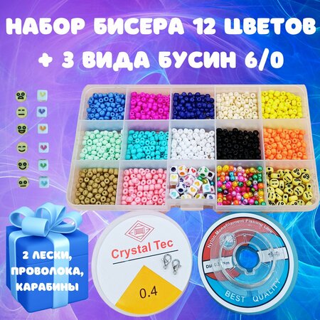 Большая палитра наборов бисера из 12 цветов и 3 вида бусин идеально подходит для детского и взрослого творчества и плетения ожерелий и бус, чокеров, колец и фенечек, вышивания бисером, создания украшений и бижутерии. В набор бисера 12 цветов в ассортименте входит бисер 12/0. Весь бисер отсортирован по цветам, поэтому Вам не потребуется дополнительно его перебирать, можно сразу приступать к творчеству. Бисер набор в размере 12/0. В каждом пакетике 10гр. Бисер разноразмерный. Все это улучшает развитие мелкой моторики у детей, и увлекает взрослых! Получившиеся изделия Вы можете подарить друзьям и родственникам, удивив их таким сюрпризом! Набор бисера для рукоделия находится в плотном органайзере 17,3х10,9х2,5 см. Удобно хранить и использовать! В органайзере для хранения бисера 12 ячеек с яркими цветами бисера. В каждой ячейке находится 10-12 гр бисера для плетения. Оттенки бисера могут отличаться от представленных на фото. Добавляйте наш бренд в избранное и следите за нашими новинками!