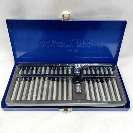 Набор бит 40 предметов TORX, Spline, HEX в металлическом кейсе от GoodKing - это профессиональный инструмент, который станет незаменимым помощником в работе с крепежом. Набор состоит из 40 предметов, включая биты TORX, Spline и HEX различных размеров. Это позволяет работать с крепежом различного типа и размера. Инструмент поставляется в прочном металлическом кейсе, который обеспечивает удобство транспортировки и хранения. В комплекте идут битодержатели 3/8”х10 мм и 1/2”х10 мм, которые позволяют использовать инструмент с различными видами отверток и дрелей. Выбирая набор бит 40 предметов TORX, Spline, HEX в металлическом кейсе от GoodKing, вы получаете надежный и функциональный инструмент, который облегчит вашу работу и сделает ее более комфортной.
