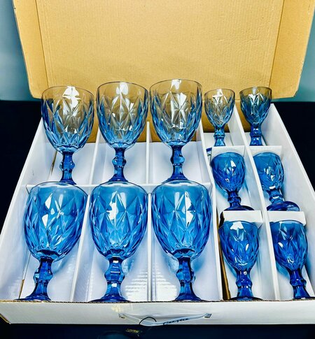 Набор состоит из 6 бокалов на 300мл, высота 17 см и 6 рюмок на 50мл, высота 11см. Бокалы имеют форму кубка, а рюмки удобно держать в руках из-за широкой ножки. Бокалы изготовлены из толстого стекла и сохраняют свой вид даже при ежедневном использовании. Они идеально подходят для прохладительных напитков, коктейлей, вин, лимонада, а также водки, коньяка или виски. Данный набор подойдет на любой праздник и станет отличным подарком для любителей цветных бокалов.