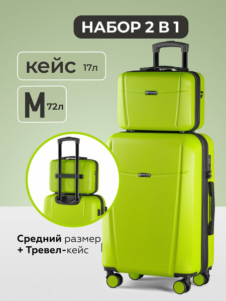 Комплект из XS бьюти кейса и чемодана на 4 колесах Bonle размера M. Они имеют красивый яркий и стильный дизайн, подойдут как взрослые мужские или мини женские чемоданы. Габариты: - Размер Bc - 36х29,5х18 см, изменяемый объем 17 литров. - Размер М- 65х44,5х25,5-31 см, изменяемый объем до 72 литров, рассчитан на нагрузку до 20 кг. Преимущества набора чемоданов: - Удобно хранить. Малогабаритные чемоданы помещаются друг в друга "матрешкой" и занимают место как один. - Милый бьюти кейс соответствует авиакомпаниям с минимальными требованиями до 5 или 7 килограмм как ручная кладь в самолет, включая Победа ( 36х30х27 см ), Utair ( 40*30*20 см ) и Nordwind ( 40х30х20 см ), а также с более крупными габаритами уральские авиалинии, аэрофлот, s7. - Размер M имеет молнию с расширением, которая позволяет добавить к глубине 5,5 см и увеличить полезный объем с 59 литров до 72 литров. - Подходят для вещей нескольких человек в качестве багажа в отпуск или командировку, для дальних поездок и путешествий на море. - Небольшой комплект легкий. Благодаря облегченной конструкции, вес Bc составляет 0,95 кг, M - 3,3 кг. - Имеют противоударный практически неубиваемый корпус, который выполнены из ударопрочного ABS пластика, обеспечивающего долговечность и стойкость к повреждениям. - Средний чемодан M оснащен кодовым замком типа TSA с функцией таможенного досмотра без повреждения чемодана. - Телескопическая ручка имеет три положения и регулируется под любой рост, обеспечивая комфортное использование. - Сумка имеет удобный ремень с регулировкой длины от 70 до 112 см, устойчивые ножки и ремень для крепления к ручке чемодана. - Колеса чемодана прорезиненны и вращаются на 360 градусов, что делает чемоданы чрезвычайно маневренными. Легко катятся по любой поверхности. - Имеют гарантию 12 месяцев, что подчеркивает насколько это надежный и прочный чемоданчик.