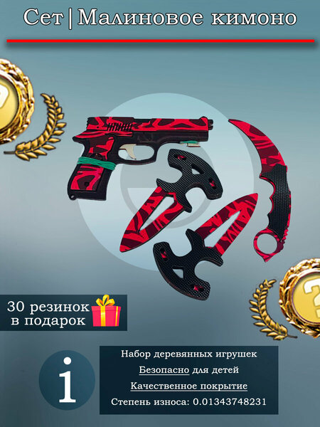 Набор деревянных игрушек "Пистолет Beretta", "Тычковые ножи" и "Керамбит" от бренда CUTE TOYS - это уникальный набор для детей и взрослых, которые любят играть в игры, связанные с оружием. Набор включает в себя три игрушки: пистолет Beretta, тычковые ножи и керамбит, выполненные из дерева. Все игрушки имеют красный цвет и тематическую линию Standoff 2 от игры CS: GO. Пистолет Beretta - это резинкострел с резиновыми пулями, который стреляет на расстояние до 5 метров. Он идеально подходит для детей от 3 лет и старше. Нож-бабочка и керамбит также выполнены из дерева и имеют реалистичный дизайн. Набор можно использовать как для игр дома, так и для игры на улице. Этот набор - отличный выбор для любителей игр и тех, кто хочет познакомить своих детей с миром оружия и игр.