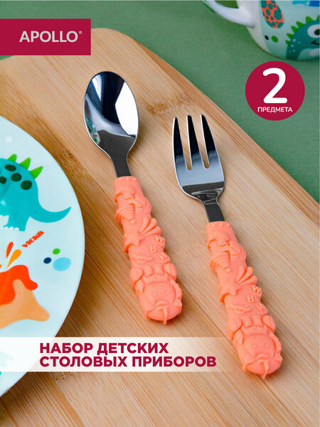 Набор детских столовых приборов APOLLO "Uni" представляет собой комплект из двух предметов - безопасной детской вилки и ложки, специально разработанных для кормления малышей от трех лет. Дизайн и функциональность: Забавные зверюшки на ручках приборов привлекают внимание малышей и делают процесс приема пищи веселым и увлекательным. Набор легко моется в посудомоечной машине и подходит для использования с любыми блюдами. Он удобен в эксплуатации и очень нравится детям. Ваш малыш с большим интересом будет учиться правильно держать вилку и ложку. Материалы и безопасность: Набор столовых приборов для детей абсолютно безопасен. Набор изготовлен из высококачественной нержавеющей стали и мягкого, приятного на ощупь силикона. Приборы покрыты нетоксичным силиконом, который защищает ручки ребенка от возможных травм и обеспечивает долговечность и устойчивость к деформации. Комплектация и упаковка: В комплект входят 1 детская безопасная вилка специально обработанными зубцами и 1 детская ложечка . Упаковка выполнена в виде блистера, что обеспечивает сохранность товара при транспортировке. Выбирая набор детских столовых приборов APOLLO "Uni", вы делаете ставку на безопасность, удобство и функциональность, делая процесс кормления вашего ребенка простым и приятным.