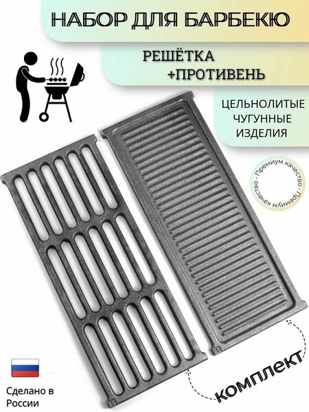 Достоинства:Толстый чугун, за цену одной решётки как у некоторых продавцов за ту же цену получаете ещё и противень. Недостатки:Пока не обнаружил Комментарий:Вот вещь так вещь, никакая переворачиваемая решётка для гриля не сравнится с этой толстенной решёткой и противнем. Всё обработал по инструкции, прокалил и хорошенько промазал льняным маслом. Просто поставил на мангал их рядом друг с другом, ничего специального городить не пришлось. Через час уже жарил свиные стейки и колбаски, ничего не прилипает и не пригорает. Я в восторге! Мясо приготовилось гораздо быстрее, чем на обычной решёточке из проволоки, осталось более сочным и нежным. Чугун очень хорошо аккумулирует и держит температуру, когда угля уже практически не было и весь выгорел, чугун был ещё достаточно горяч и успел пожарить небольшую партию нарезанного кольцами картофана)) Всем рекомендую!!👍
