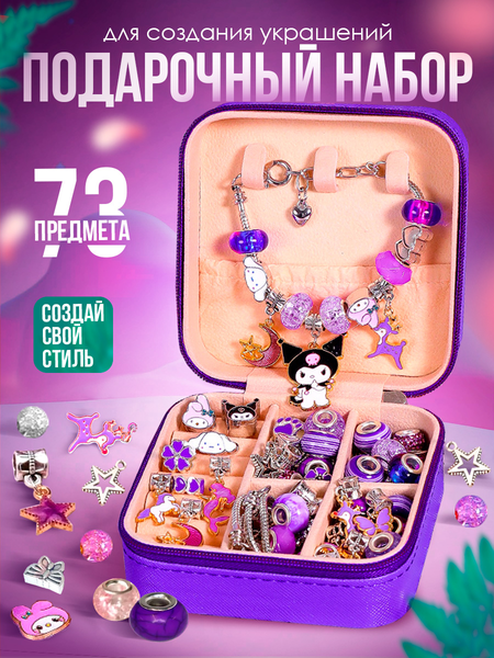 Набор для браслетов и украшений в шкатулке / Подарок для девочки на день рождения и 8 марта / Набор для создания браслетов и украшений / Куроми / Набор куроми