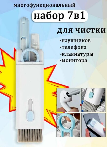 Набор для чистки гаджетов 7в1 TH120-43, цвет бело-голубой / Многофункциональная щетка для чистки наушников, клавиатуры, экрана телефонов и ноутбуков