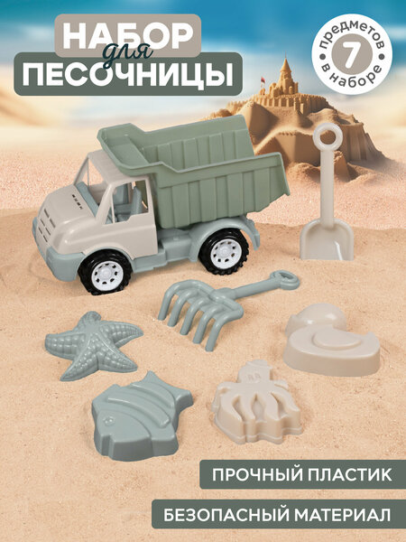Набор для песочницы с грузовиком торговой марки "Компания Друзей" станет отличным подарком для мальчиков и девочек. В песочный набор входит всё самое необходимое для весёлой игры: машинка-грузовик, формочки для песка, лопатка, грабли. Реалистичный дизайн и привлекательная расцветка грузовика не оставят равнодушным никого вокруг. В кабину можно посадить игрушечного водителя, придумывая новые игровые сюжеты. Грузовик машинка имеет крепкий корпус и подвижные элементы, кузов поднимается и опускается, в нём можно перевозить песок или мелкие предметы. Большие устойчивые пластиковые колеса надежно закреплены и позволяют катать самосвал практически по любой поверхности. Игрушки для песочницы имеют удобные размеры, ими комфортно играть даже самым маленьким. Элементы набора не имеют острых краёв и мелких деталей, изготовлены из качественной пластмассы, не содержащей вредных веществ. Они полностью безопасны для детей, имеют необходимый сертификат и соответствуют установленным требованиям. Игрушки для песка легко чистятся и быстро сохнут после мытья. На них не скапливаются бактерии, что делает процесс использования более гигиеничным. Набор игрушек для песочницы подойдет для игры с песком, с водой, а также с кинетическим песком. Зимой набор подойдет для игры со снегом. Благодаря компактным размерам, комплект легко хранить и брать с собой на пляж, на дачу или в детский сад. Игра с песком развивает воображение, мелкую моторику, творческие способности, благотворно влияет на общее развитие. Комплектация: машинка-грузовик 23 см, 4 формочки 9 см, лопатка 15 см, грабли 15 см Упаковка: сетка Материал: пластик