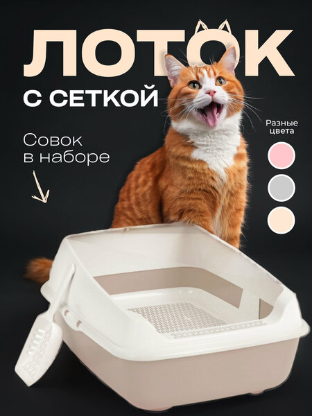 Лоток для кошек с высокими бортами, сеткой и совком изготовлен из прочного пластика, безопасен для здоровья питомца и не имеет посторонних химических запахов. Главным преимуществом изделия являются продуманные до мелочей размеры изделия, благодаря которым изделие подойдет даже для крупных пород. Такой туалет можно использовать как лоток для собак или других домашним животных. Благодаря высокому борту наполнитель не разбрасывается по комнате, а остаётся в лотке. Борт крепится к лотку крепкими защелками и легко убирается при необходимости. Сетка с высокими ножками позволяет использовать различные виды наполнителя или не использовать никакой, так как благодаря сетке ваш питомец точно не промочит лапки. В комплекте идет совок, который удобно крепится на борте изделия. Помимо этого, изделие имеет эргономичную форму и актуальный цвет, который прекрасно впишется в любой интерьер. Размеры изделия (ДхШхВ) 505х390х235 мм