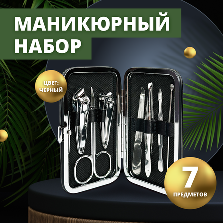 Маникюрный набор для женщин и мужчин, черный, 7 предметов в кейсе