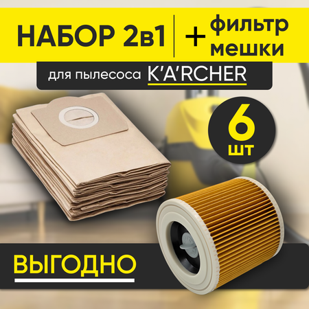 Набор мешок - пылесборник и фильтр для пылесоса Karcher (Керхер) - это незаменимые аксессуары для поддержания чистоты в вашем доме, на стройке. Они специально разработаны для использования на пылесосы Karcher, известными своей надежностью и высоким качеством. Мешки для пылесоса и фильтр эффективно улавливают пыль, грязь и другие мелкие частицы, предотвращая их попадание обратно в воздух. Таким образом, они не только помогают сохранить вашу квартиру или дом чистыми, но и улучшают качество воздуха в помещении. Комплект включает в себя 6 (шесть) мешков, которые легко устанавливаются в пылесос, а также патронный фильтр, который помогает удерживать даже самые мельчайшие частицы. Аксессуары для пылесоса Керхер просты в использовании и замене, что позволяет вам быстро и удобно поддерживать чистоту в вашем доме. Мешки для пылесоса Karcher и фильтр (hepa) изготовлены из высококачественных материалов, обеспечивая долговечность и надежность. Набор мешки и фильтр - это экономически выгодное решение.