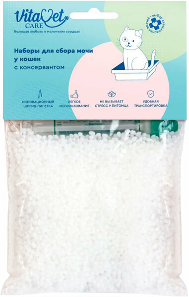 Набор для сбора мочи VitaVet Care для кошек с пластиковыми гранулами и консервантом