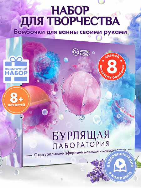Хотите весело и с пользой провести время с ребёнком? Большой подарочный набор для творчества для девочек и мальчиков «Бурлящая лаборатория» станет Вашим помощником. Вместе вы сделаете 8 ароматных бомбочек для ванны — с шипением, пузырьками и сюрпризами внутри!